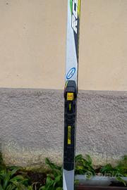 Sci da fondo classico con attacco salomon. Manca pezzo di plastica finale di uno dei due attacchi ma non compromette la funzionalità dello sci.