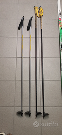Un paio di sci da fondo tecnica skating vecchio modello marca Atomic con un paio di racchette