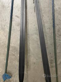 • Specialità: Sono sci specifici per la tecnica Skating (passo pattinato), come indicato chiaramente dalla scritta sul fianco. Rispetto agli sci da tecnica classica, sono solitamente più corti, rigidi e privi di scoline per la tenuta (scaglie o zone per la sciolina di tenuta).
