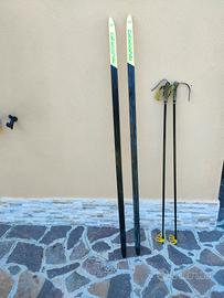 Sci da fondo Slegar Olimpic misura 180 con attacchi Rottefella, usati 3 volte. Racchette e scarpe Artex misura 37.