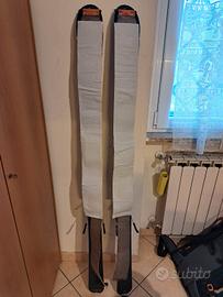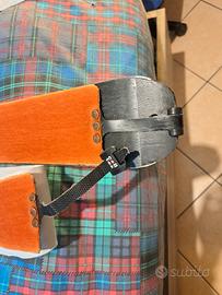 Sci da scialpinismo 166 cm lunghezza, 76mm in pianta, 170mm in punta, 140mm in coda. Compresi di pelli in ottimo stato, perfettamente sagomate per lo sci e rampant mai utilizzati. Lo sci è già sciolinato e con le lamine fatte, pronto subito per essere sciato. Attacco basculante Diamir perfettamente funzionante come da foto. Vengono venduti con due plastichine per attaccare le pelli, con la sacca delle pelli e la sacca porta rampant. In ottimo stato, unico segno di usura una parte sotto il centro di uno sci dove la lamina è leggermente sbeccata a causa di un sasso.