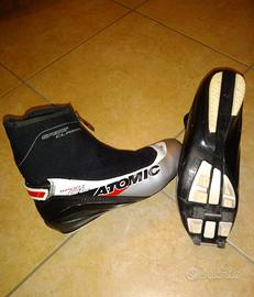 Insieme vendo scarpe ATOMIC SPORT CLASSIC 16 -misura 41 - Volume sport fit 104 mm - sistema di allacciatura Forefit - suola SNS Pilot Equipe - rinforzo interno del tallone - cinturino regolabile sul tallone - fodera in schiuma sul tallone - coprilacci con zip centrale. Le scarpe sono compatibili solo con lo standard SNS - prezzo scarpe 25euro.