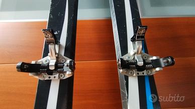 Sci da scialpinismo race Dynafit PDG (serie 2013), con attacchini Kreuzspitze (1 rialzo per la salita). Consumati come da foto, ma perfettamente funzionali. Soletta già rifatta, ma si potrebbe di nuovo ripassare, nessun buco grosso evidente. Lunghezza 161 cm. CUT 99-65-80. Molto leggeri, ieali per gare e allenamenti su tracciolini. Consegna solo a mano o con spedizione a parte.