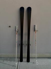 Paio di sci lungo 162 cm + racchette 115cm