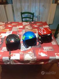 Vendo sci, scarponi e caschi per bambini/e di varie misure: