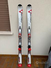 Sci Fisher S250 con attacchi Salomon. Facili da condurre e stabili sia in discesa che in curva.