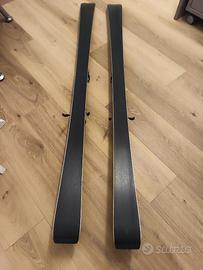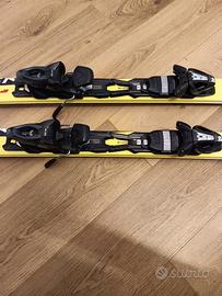 Attacchi alpini regolabili, compatibili con diverse misure di scarpone.