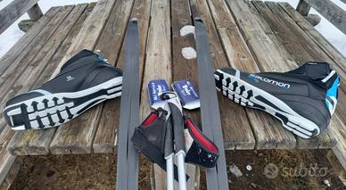 Causa inutilizzo, usati solo un paio di volte, cedo sci da fondo per la tecnica classica altezza cm.202, con attacchi Rottefella, bastoncini swix e scarpe da fondo della Salomon taglia 45, il tutto condizioni pari al nuovo. Valuto eventuale vendita singolarmente ma ovviamente a cifre diverse dall'acquisto in lotto. Rimane comunque un ottimo affare per chi se ne intende un pò. Gradita ma non vincolante la consegna brevi manu.