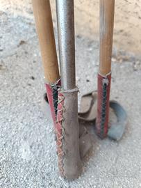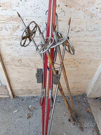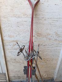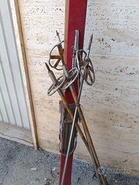 Sci legno Cambi anni 50/60 con bacchette in bambù con impugnatura in pelle , due piccole e due grandi . Per collezionismo.