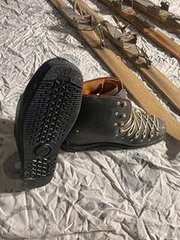 Sci in legno vintage, racchette e scarponi in buono stato, vendo.tutto in blocco o separatamente valuto offerte .