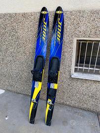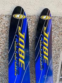 Vendo coppia di sci nautici Jobe Allegre in ottime condizioni, usati ma sempre tenuti con cura. Si tratta del modello Trainer Combo, perfetto per chi vuole iniziare o per chi ha già un po’ di esperienza. Hanno un design sportivo e accattivante con colorazione blu, gialla e nera, e sono dotati di attacchi regolabili che si adattano facilmente a diverse misure di piede. Sono leggeri, resistenti e garantiscono un buon galleggiamento, ideali per divertirsi in acqua in tutta sicurezza. Disponibile la spedizione o ritiro di persona. Dimensioni:170x17 cm
