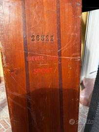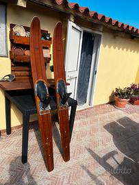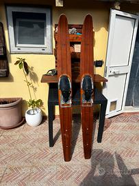 Coppia di sci nautici vintage in legno laminato, modello Reflex verniciato, marca Schmitt, Seyssinet, circa 1958/1960. Campioni del mondo 1955-1957. Scarpo...