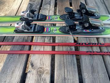 Compra paio di sci Rossignol 175 cm stile moderno, completi di attacchi Rossignol 120 regolabili, già montati e pronti all’uso. Inclusi nel set anche bastoncini Atomic, leggeri e resistenti, per un kit completo perfetto per iniziare subito la stagione.