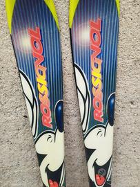 Sc marca i Rossignol , sono una pre- serie speciale disegnata in collaborazione con Disney, riportano le grafiche Rossignol- Topolino.. Sci mancanti di attacchi sono integri, adatti a bambinbi sono lunghi 130cm.