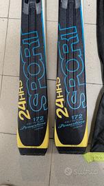 VENDO SCI SALOMON 24HRS SPORT TAGLIA 172 COMPLETI DI ATTACCHI SALOMON, BASTONCINI SALOMON E SACCA CONTENITORE PRATICAMENTE NUOVI USATI 4/5VOLTE HANNO UN SOLO GRAFFIO SULLA BASE DELLO SCI DESTRO.