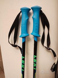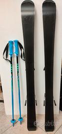 Sci Salomon h 110 modello QST LUX Jr con attacchi Salomon. Bastoni Leki h 80. Ottimo stato perché usati pochi giorni (circa 20 in totale). Per bambini fino a circa 8 anni.