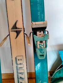 vendo anche separatamente 2 coppie di sci da slalom compresi di bastoncini. la lamina è ancora in buone condizioni. Gli attacchi dei VÖLKL sono da cambiare.