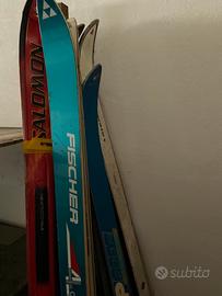 Serie di 4 sci vintage Rossignol, Fischer e Salomon