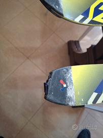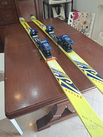 In vendita una coppia di sci vintage Rossignol Groupe 1 Kevlar di fine anni '90 / primi anni 2000. Un pezzo di storia dello sci! Dettagli: Modello: Rossignol Groupe 1, costruzione in Kevlar (made in France). Grafica: Giallo e blu acceso, molto iconica del periodo. Attacchi: Montano attacchi vintage Salomon S900 Composite. Dimensioni: La lunghezza è indicata come 188 cm (come visibile sulla soletta nell'immagine 3). Sci lunghi e "dritti", stile old-school. Condizioni: Gli sci sono usati e mostrano i normali segni del tempo e dell'utilizzo (graffi e scalfitture cosmetiche sul topsheet e sui lati, visibili in foto). Non sono stati testati sulla neve di recente e, vista l'età, si sconsiglia l'uso per sciare a meno che non vengano controllati e revisionati da un professionista (specialmente gli attacchi). Ideali per: Arredamento: Perfetti per dare un tocco retrò e sportivo a una casa in montagna, uno chalet, un garage o una vetrina. Collezionismo: Per amanti dell'attrezzatura da sci vintage.