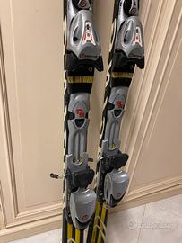Sci Völkl P40 SL Carver da 170cm sono un modello di sci alpino da pista ad alte prestazioni, appartenenti alla categoria dei race carver da slalom. Sono rinomati per l'eccellente tenuta su neve dura e ghiaccio e per la capacità di eseguire curve strette e rapide con precisione. Caratteristiche Principali Tipologia: Sci da slalom (SL) orientati alla performance in pista. Costruzione: Includono un'anima in legno e strati di titanio (Powered by Titanium / Energy Frame) per garantire rigidità torsionale e stabilità alle alte velocità. Tecnologie: Presentano il concetto "3D Sidecut", che combina diverse geometrie di sciancratura lungo lo sci per facilitare l'ingresso, la tenuta e l'uscita di curva. Attacchi: Sono abbinati ad attacchi Marker Tyrolia, che includono il sistema "Selective Control" per regolare la flessione dello sci in base al tipo di neve. Comportamento sulla Neve Questi sci richiedono uno sciatore esperto e attivo, che sappia impostare correttamente la curva fin dall'inizio. Non sono sci che curvano da soli; al contrario, danno il meglio se sollecitati con decisione e sono molto stabili e reattivi quando condotti correttamente. Eccellono nelle curve a corto e medio raggio e sono meno adatti a velocità molto basse o alla neve fresca. Tenuti bene e usati poche stagioni. Completi di attacchi.