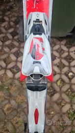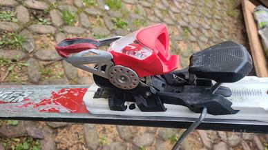 Gli sci presentano normali segni di usura e un piccolo buco sul fondo e manca un gommino skistop.