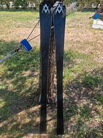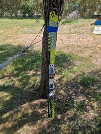Questi sono sci da slalom Völkl Racetiger SL. Destinazione d'uso: Progettati per affrontare curve strette e cambi di spigolo rapidi. Tecnologia: Costruzione con nucleo in legno, strato in Titanal, tecnologia 3D Glass e spatole in carbonio (Tailored Carbon Tips). Profilo: Presentano un profilo Tip Rocker per facilitare l'ingresso in curva. Attacchi: Spesso equipaggiati con sistemi Marker rMotion. ottimo affare