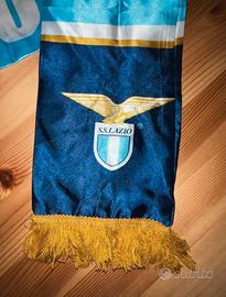 Sciarpa della Lazio originale In tessuto di raso, con frange dorate in acrilico