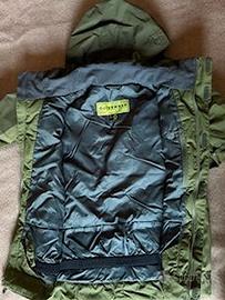 Completo da sci giacca e pantaloni entrambi in gore-tex (impermeabilità 20.000 colonne d’acqua) taglia 140cm, in ottime condizioni. La giacca ha 2 tasche con cerniera alla vita, 1 tasca alta con cerniera (ottima per conservare il giornaliero), 1 tasca interna, 2 cerniere sotto le ascelle per aereazione. I pantaloni hanno 2 tasche posteriori, sono regolabili in vita, ghette interne regolabili. A livello di impermeabilità e traspirazione il Gore-tex è nettamente superiore rispetto ad altri materiali tecnici spesso usati per i capi junior (es. DRYOsphere, Pertex, ecc.). Orlo maniche della giacca e orlo pantaloni consumati (vedi foto). L’impermeabilità è stata ravvivata con un lavaggio specifico per capi in gore-tex.