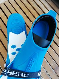 Vendo praticamente pari al nuovo, pinne SEAC mod. Vela n.38 / 39 Usate solo un paio di volte l'estate scorsa da mio figlio e quest'anno ha già perso la misura. Vestibilità ottima (molto comode), sono di qualità decisamente superiore alle classiche e basiche SUBEA di Decathlon. Unisex , uomo , donna , bambino , perfette x snorkeling, nuoto e altro. No mares , no cressi , no aqualung . Preferibile consegna a mano zona Padova ma posso eventualmente spedire con TuttoSubito. Massima serietà, prego astenersi perditempo. Per qualsiasi ulteriore informazione chiedete pure (primo contatto tramite Subito).