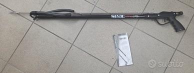 Vendo Seac Sting 75 cm, fucile subacqueo arbalete per pesca in apnea, perfetto per principianti ma con caratteristiche PRO. Bilanciato con impugnatura anatomica e appoggio sterno per facile carico e tiro.Specifiche tecniche:Lunghezza totale 75 cm, asta acciaio PR80 Ø7mm (95 cm)Testata doppia per 1-2 elastici paralleli Ø16mm latex ambra