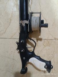 Salve vendo fucile arbalete seatec geko 90 completo di staffa cam mulinello asta ed estatici perfettamente funzionante ma presenta dei difetti estetici come il foto elastici ed asta sostituiti l anno scorso un elastico ha un difetto solo estetico ma Nuovo vendo per esubero