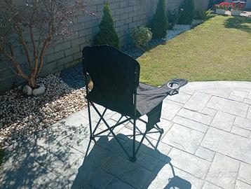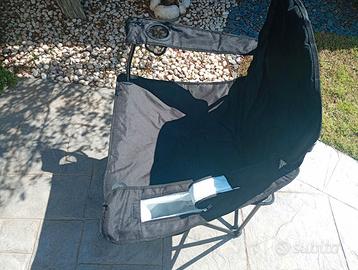 Vendo sedia da campeggio mare montagna pesca imbottita Amazon basic XL, seduta e schienale con cuscino per un ottimo comfort, in eccellenti condizioni complessive, mai usata, di seguito specificato: Sedia da campeggio imbottita, seduta e schienale con cuscino per un ottimo comfort; colore nero brillante. Tasca termica incorporata appesa al bracciolo per tenere al fresco le bevande; portata massima fino a 4 lattine da 354 ml. Porta bicchieri incorporato per appoggiare una bevanda aperta; prodotto dotato di tasca in cui inserire riviste e oggetti personali. Robusta struttura in acciaio per una massima resistenza; sedia con design pieghevole; compatta; si piega e si può riporre comodamente all’interno della maggior parte delle auto. Borsa per il trasporto inclusa per conservare la sedia ovunque
