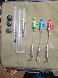 vendo tre segnalatori visivi da Carpfishing della Solar modello Titanium versione corta, con abbinate tre testine colorate verde, rossa e blu.