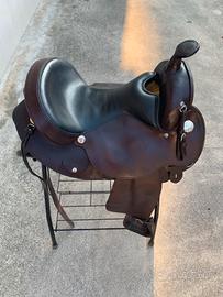 Vendo sella americana Cicle Y, prodotta in Texas, testa di moro/nera. In cuoio morbido, con cavalletto e coprisella.