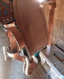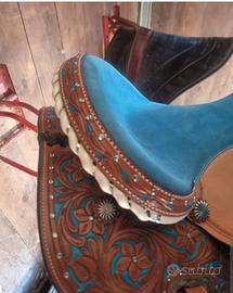 sella americana con finimenti azzurri, n. taglia 15. E NUOVA usata una volta, poi non stava bene