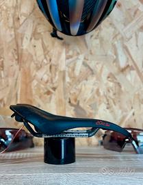 Vendo sella smp F20C s.i per passaggio ad altro modello. La sella ha un anno di vita (purtroppo ho perso lo scontrino per la garanzia). Ideale per chi ha una larghezza ischiatica che va da 9 a 12cm, monta carro in carbonio e il suo peso è di soli 155 grammi.