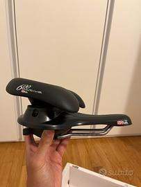 Sella per bicicletta SQ Lab Active 600 che garabtisce 100% sollievo sull’area perineale. I due cuscinetti separati sono regolabili in 3 larghezze, e l’ammortizzatore riduce l’impatto sulla spina dorsale. Ideale per bici da citta con posizione rilassata. Peso garantito fino a 120 kg. Nuova mai utilizzata, prezzo originale di acquisto 129,90€. Garantita dal marchio tedesco SQ Lab