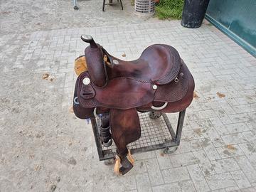 si propone in vendita bellissima sella western monta americana reining billy cook pro classic 16 pollici full quarter in ottime condizioni come da foto con staffe in legno. ideale anche per lavoro in piano, passeggiate, trekking, gimkana , lavoro con vitelli. per info 3357836837, visibile a gualtieri Reggio Emilia, prezzo comprensivo di spedizione direttamente a casa vostra.