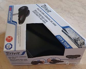 Sella per biciclette marca Crivit Air Comfort per categorie biciclette City & Tour. La sella da come potete vedere tra le foto è nuova, però ha un problema che vado a spiegare. Provando la pompetta per gonfiare i cuscinetti, si è rotta e quindi i cuscinetti non funzionano ma la sella rimane sempre comoda forse attualmente più indicata per una bici da passeggio. La rottura della pompetta è visibile nell'ultima foto dell'annuncio, il resto è tutto nuovo.