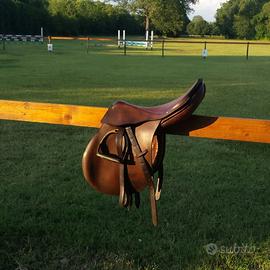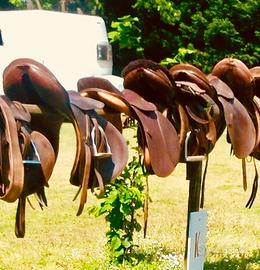 Prestige Appaloosa pari al nuovo ( poiche ‘ ne avevo altre tre , identiche , che usavo a rotazione ) . Sella eterna che viene costruita da circa 50 anni senza cambiare un solo punto di cucito … Il suo prezzo oggi , nuova in negozio , e’ 2500 euro e li vale tutti …. Si adatta egregiamente per qualsiasi cosa si voglia fare a cavallo al punto che chi ce l ha non la vende sicuramente a meno che , come me , non si sia stancato di montare …. il valore che ha oggi lo avra’ anche tra altri 20 anni se tenuta come l ho tenuta io …. Per praticare un’ equitazione di qualità e dí soddisfazione la sella riveste un ‘ importanza pari a quella del cavallo che si monta ..nelle ultime foto sono poi visibili altre mie selle accumulate negli anni ….