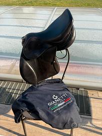 Selleria Gianetti, acquistata a novembre 2017, la cui misura è 16 1/2. La sella è stata sempre curata con attenzione, regolarmente ingrassata e mantenuta in ottime condizioni.
