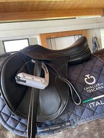🛑Vendo sella da salto misura 17,5, modello Modigliani, arcione regolabile, colore nero, non completa di staffe e staffili, presenta un piccolo difetto come visibile in foto. CONTATTARE 3518668862 ❗️ OPPURE 3385628880❗️