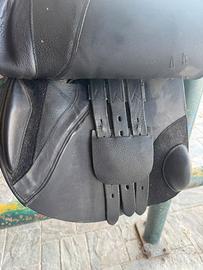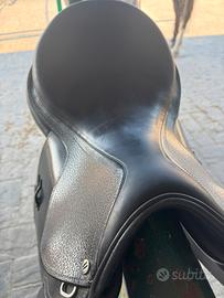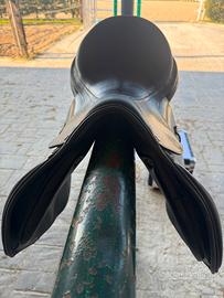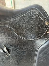 Sella da salto Horsena modello Grace in vero cuoio martellato di produzione italiana.Il seggio medio profondo risulta molto comodo e i cuscini in lattice distribuiscono il peso del cavalliere in maniera ottimale. La sella è stata acquistata nuova nel maggio 2025 ed è in condizioni perfette.