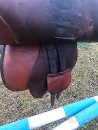 Sella ( mis.18)che comprai anni fa per la sua bellezza senza nemmeno provarla . Sicuramente fatta da un artigiano della scuola Pariani per la fattura e il cuoio straordinario. Oltre ad essere un ottima sella e' uno di quegli oggetti che impreziosiscono qualsiasi ambiente . In condizioni eccellenti, chiaramente. Poi ho da proporre anche una intramontabile Prestige Appaloosa introvabile in questo stato ( pari al nuovo) .