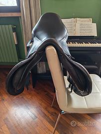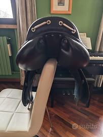 Come da titolo si vende sella usata in cuoio. Misura 17.5. Piccolo taglio sotto come da foto e leggera usura dovuta all'utilizzo sui quartieri. Prezzo leggermente trattabile. Per altre foto e informazioni contattatemi!