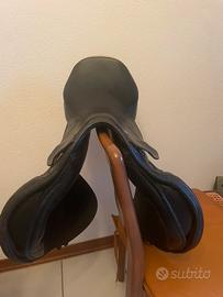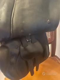 Vendo sella da salto Prestige Appallosa colore nero usata ma in ottime condizioni Misura 17 completa di sottopancia pararamponi nero 135 cm (staffili e staffe non inclusi)
