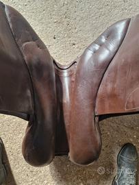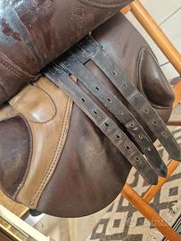 Vendo sella da salto Stübben. Colore marrone in cuoio, seggio ergonomico. misura 18. Ci sono segni di usura che però non compromettono l'utilizzo.