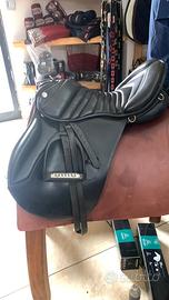 Vendo sella da trekking ZALDI usata pochissimo colore nero misura 17.5 . La sella è completa di staffe e staffili .