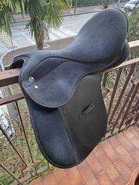Sella Daslo in cuoio sintetico provvista di archetto intercambiabile che consente di adattare la sella al garrese di ogni cavallo. Con seggio ed appoggi anteriori rivestiti in materiale scamosciato anti-scivolo, arcione sintetico flessibile. Estremamente leggera e di facile manutenzione.