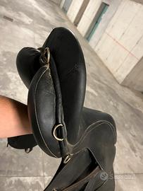 Sella monta all'inglese, 17,5”(45 cm),colore nero, completa di staffe ma non sottopancia, utilizzata da ragazza, per trekking e dressage.